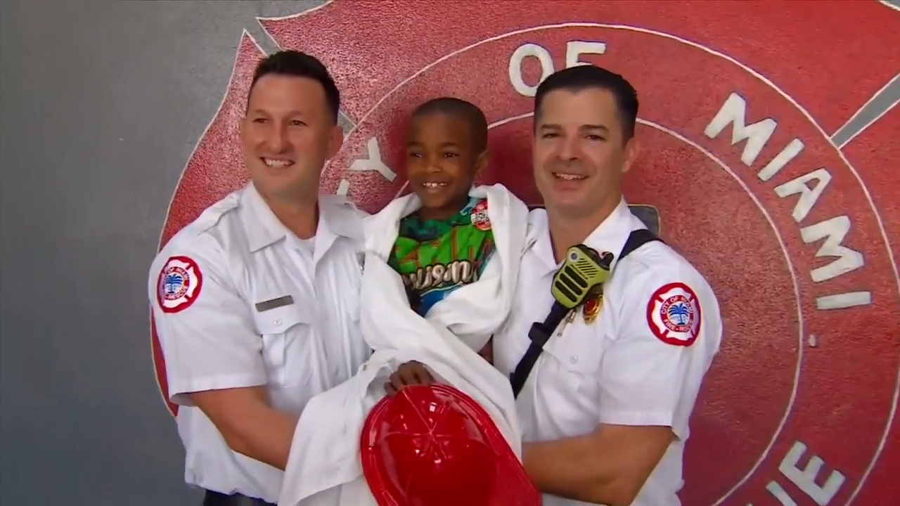 Boy celebrates 10th birthday with Miami firefighters who delivered him