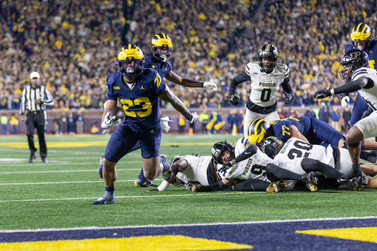 Let’s Remember Some Games: Under The Lights, Part One (2011 Notre Dame) September 9th, 2020 at 3:54 PM Ace September 9th, 2020 at 3:54 PM the first-half high point was a high point [ESPN screencap] Previously: Krushed By Stauskas (Illinois 2014), Introducing #ChaosTeam (Indiana 2009), Revenge is Terrifying (Colorado 1996), Four Games In September I (Boston College 1991), Four Games In September II (Boston College 1994), Four Games In September III (Boston College 1995), Four Games In September IV (Boston College 1996), Pac Ten After Dark Parts One and Two (UCLA 1989), Harbaugh’s Grand Return Parts One and Two (Notre Dame 1985), Deceptive Speed Parts One and Two (Purdue 1999) Week One: 1993 Washington Part One, Part Two, 2002 Washington Twitch stream This Game: Condensed game, WH highlights, box score, MGoPreview, Denard After Dentist, Offense UFR, Defense UFR, a Notre Dame fan’s live blog Lineup Cards! Brought to you by Seth. Click the images to embiggen. Michigan offense vs. Notre Dame defense: Michigan defense vs. Notre Dame offense: Michigan-Notre Dame is a sight to behold. Yes, the rivalry has lost its national luster. The Irish’s season-opening loss to USF ensures this is the third time in five games both teams enter the contest unranked; that hadn’t happened in the history of the rivalry until 2007. Notre Dame is in year two under Brian Kelly after the program bottomed out under Charlie Weis. Michigan is in year one under Brady Hoke (and offensive coordinator Al Borges) after Rich Rodriguez could only field half of a good team. The rivalry itself is still healthy, however. Despite being, well, not very good, the Wolverines have taken the last two games in the series, both last-minute triumphs featuring star-turning performances by Michigan quarterbacks—Tate Forcier in 2009 and Denard Robinson in 2010. Meanwhile, the two teams are playing in Michigan Stadium’s first-ever night game. As per usual with this game, nobody has a clue what to expect. Notre Dame turned the ball over five times in its season opener but only lost by three points. Michigan looked good against an overmatched Western Michigan squad but didn’t even complete three quarters before the game was called due to lightning. How little did we know? This was in Brian’s preview: The only thing we can take from the USF game is that Notre Dame has trouble defending bubble screens. The Bulls consistently racked up 5-10 yards despite the wholesale suck of Daniels. Chalk up some free yards on the outside. Chalk is easily erased, thankfully. As you’d expect from a game with a name—Under The Lights—there’s a lot of pregame fanfare. Michigan unveils the Legends Jersey program by honoring Desmond Howard. .embed-container { position: relative; padding-bottom: 56.25%; height: 0; overflow: hidden; max-width: 100%; } .embed-container iframe, .embed-container object, .embed-container embed { position: absolute; top: 0; left: 0; width: 100%; height: 100%; } [After THE JUMP: #FreeDenard] Junior Hemingway wears the celebrated #21 uniform. Ann Arbor goes from dusk to dark within the first couple minutes of kickoff. The Goodyear blimp captures the scene. It’s beautiful. Unfortunately, the same can’t be said for Michigan’s first half. Notre Dame wins the toss and defers, so we start the game with a taste of Denard-Borges fusion cuisine. It’s but a nibble: after Robinson gains seven yards on a QB power to open the drive, standout ND linebacker Manti Te’o destroys a QB stretch, lineman Ricky Barnum false starts, and Robinson misses a third-and-11 checkdown behind the line of scrimmage. A suboptimal start, though at least Borges is running Denard out of the shotgun, which strikes terror into the heart of every Irish partisan after his record-breaking performance in 2010. The first Irish drive is foreboding; while this mostly applies to Michigan’s young defense, still getting accustomed to Greg Mattison’s new scheme, there’s also a brief ND slip-up to keep in the memory bank. Running back Cierre Wood opens the drive with an 11-yard rush, exploiting a bad angle by freshman linebacker Desmond Morgan, who’s been pushed into starting duty for lack of a better alternative. QB Tommy Rees hits WR Michael Floyd for a 21-yard gain. Wood covers 11 more yards straight up the gut to set up first-and-goal. Rees fumbles the next snap; he manages to dive on it to save the drive. Two plays later, Mattison brings a heavy blitz, leaving safety/nickel Thomas Gordon on an island with slot Theo Riddick, whose versatility and receiving ability still have him in the NFL nine years later. When ND’s line easily picks up the rushers, this goes as you’d expect. Gordon is shading Riddick far enough inside that Rees can miss his mark on the out route by a yard and still throw an easy touchdown. .embed-container { position: relative; padding-bottom: 56.25%; height: 0; overflow: hidden; max-width: 100%; } .embed-container iframe, .embed-container object, .embed-container embed { position: absolute; top: 0; left: 0; width: 100%; height: 100%; } 7-0, Irish. Michigan goes three-and-out. They’ve used three running backs in six plays: starter Michael Shaw, power back Stephen Hopkins, and third-down back Vincent Smith. A holding penalty on the punt return at least pins ND inside their 20. We return from commercial break to learn Kirk Herbstreit has consumed what he believes is an all-time record four Zingmerman’s sandwiches in two days. Sir. He also says one of those sandwiches was a PB&J, which is how you know he makes a stupid amount of money. Anyway, Brian Kelly keeps calling the perfect counters to Mattison’s myriad blitzes. The combination of runs away from pressure and quick-hitters to Floyd, Riddick, and tight end Tyler Eifert is proving difficult to slow down. Michigan simply doesn’t have the talent in the secondary to keep up. Floyd sets up another first-and-goal when he opens up corner Courtney Avery on a slant. .embe