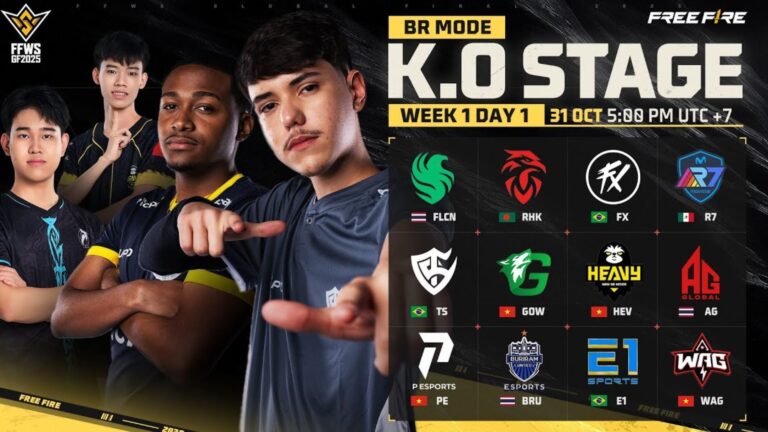 Day 1 of the Free Fire World Series (FFWS) 2025 Global Finals Knockout is set to be played on October 31. A total of 18 teams from around the world have made it to the Knockout Stage of the event.