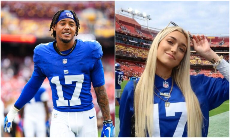 Wan’Dale Robinson’s girlfriend, Alyna Wampler, shared a romantic moment with him on the sidelines after the New York Giants’ win in Week 6.