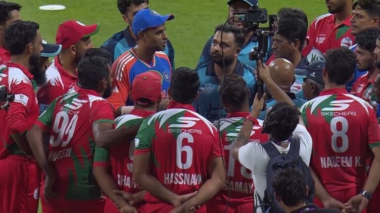 In the post-match scenes, the Indian and Omani players were also seen clicking pictures together. Recognising the valiant effort from their opponents, Suryakumar Yadav led his team toward the Oman dugout, initiating handshakes, exchanging smiles.