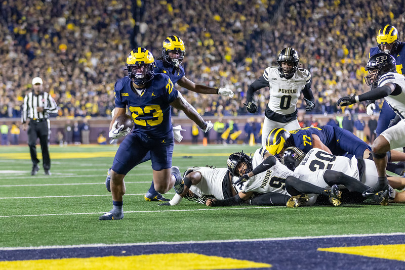 A long review determined whether the dreaded rule — a touchback when the ball carrier fumbles into the end zone — applied. The call stood, pulling Michigan within seven.