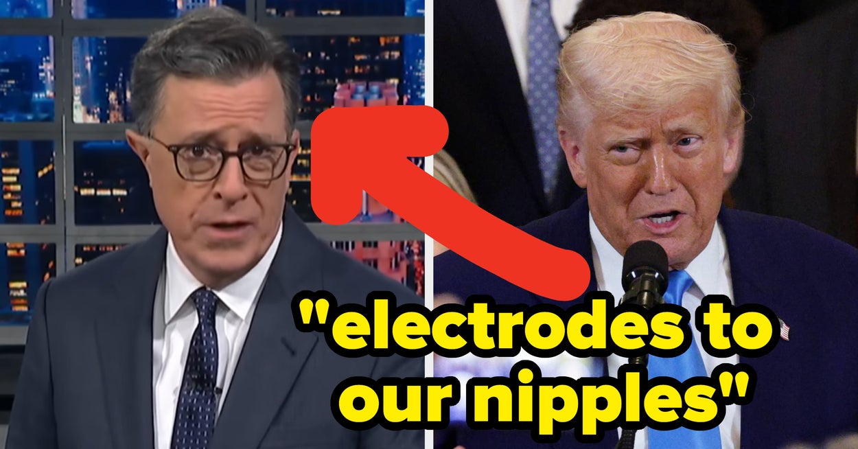 *The Late Show host was so shocked that he compared it to Trump metaphorically attaching “electrodes to our nipples.”*