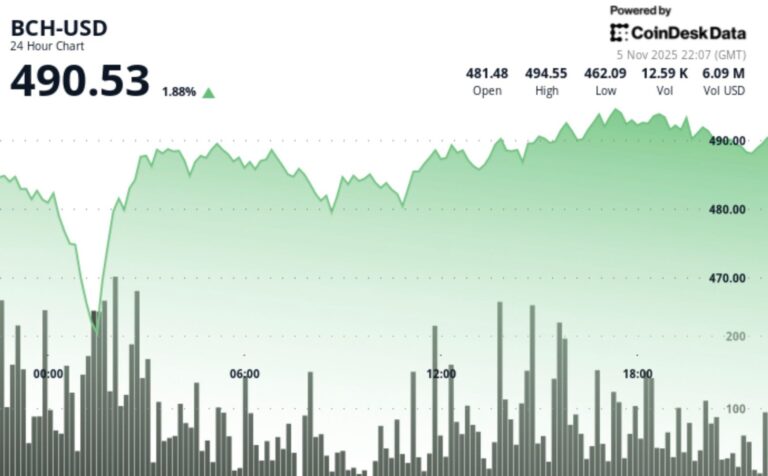 European session buying lifted volume 78% above the 24-hour average as bitcoin cash set higher lows at $462. 67, $474. 27 and $479. 03.